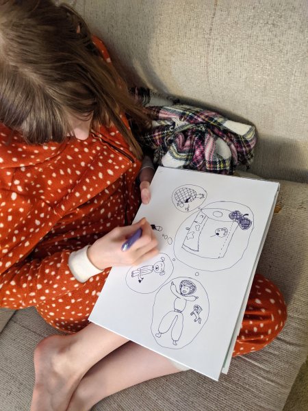 We’ve been watching drawing tutorials on YouTube by Mo Willems and Jarrett J. Krosoczka. And a few others as well but these two are probably our favorites.